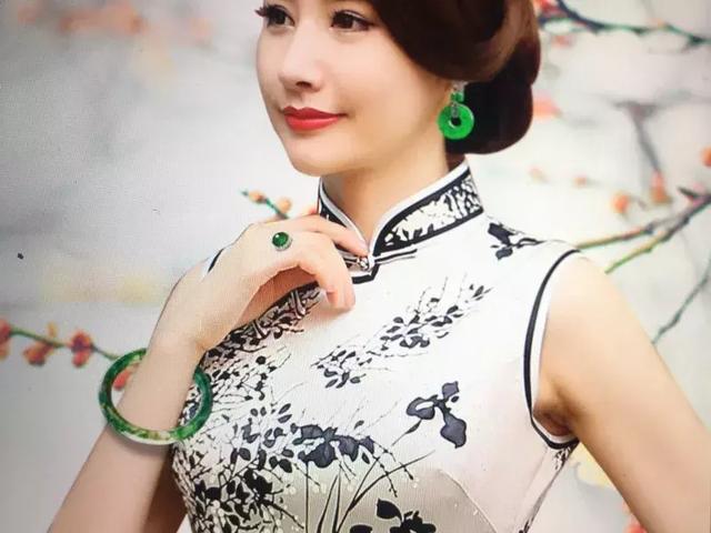 除了发型搭配合宜,搭配旗袍的饰品也很重要,可供搭配的饰品是不少,珍珠、翡翠各色宝石都可以。这里你只需记住搭配的关键:简洁。