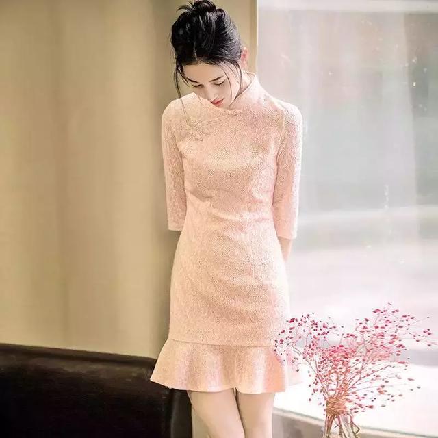 爱旗袍的女人们开始将旗袍作为日常穿搭,无论走到哪里,都会在不知不觉间引起人们的注意。不同于我们常见的复古修身款式,改良后的鱼尾旗袍让人眼前一亮,俏皮款式,粉色蕾丝材质更添甜美气息。▼