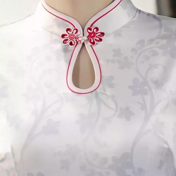 真丝旗袍是夏天常见的旗袍,由于材质的特殊性也造就了真丝材质旗袍轻薄透气、手感丝滑,富有光泽,高雅华贵、坠感好的特点,并且有着良好的吸湿、散湿功能。
